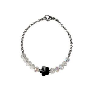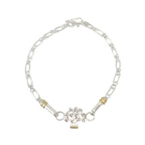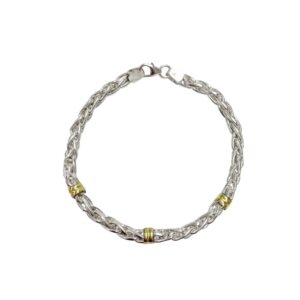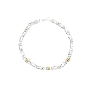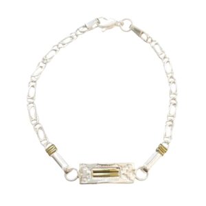 BRAZALETE HOJA Y PIEDRA DORADA Y PLATEADA