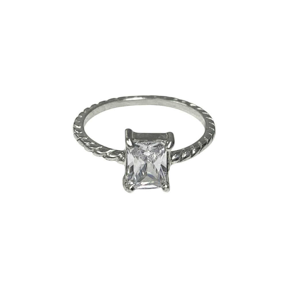 Anillo cubic rectangular pl Piedra blanca