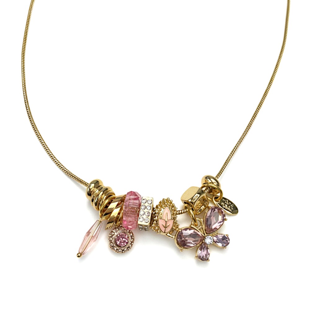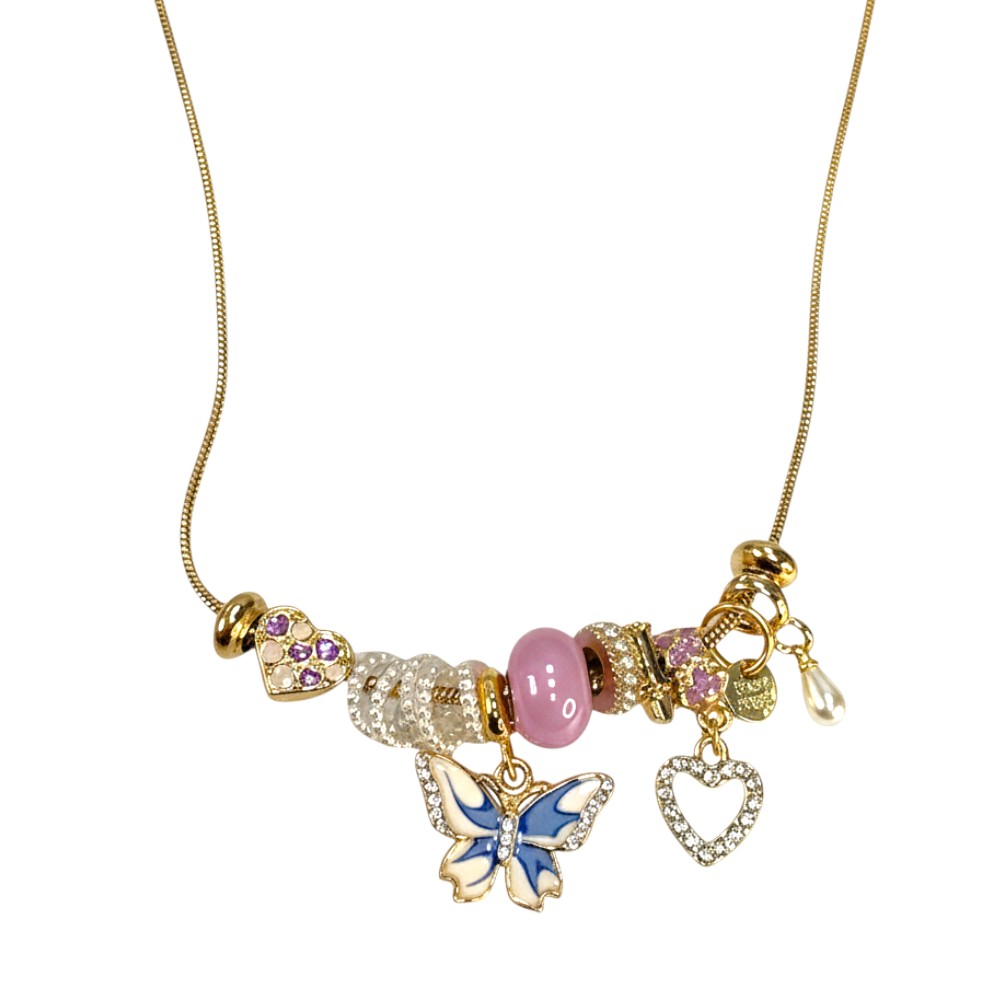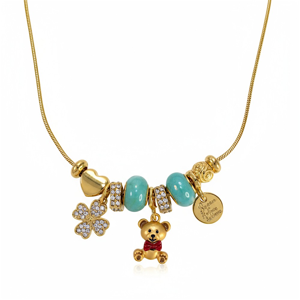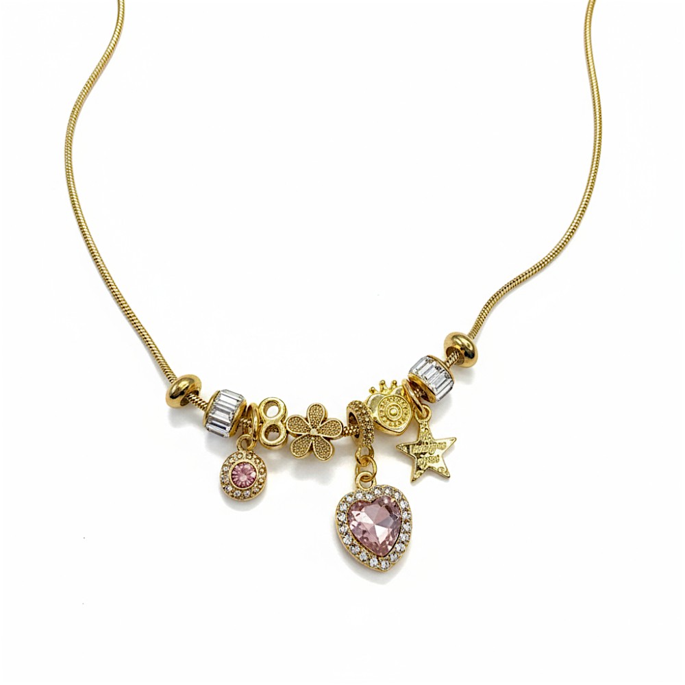 Collar tipo pandora con dijes dorado Viene con distintos dijes Medida 45cm+5cm de alargue Acero dorado