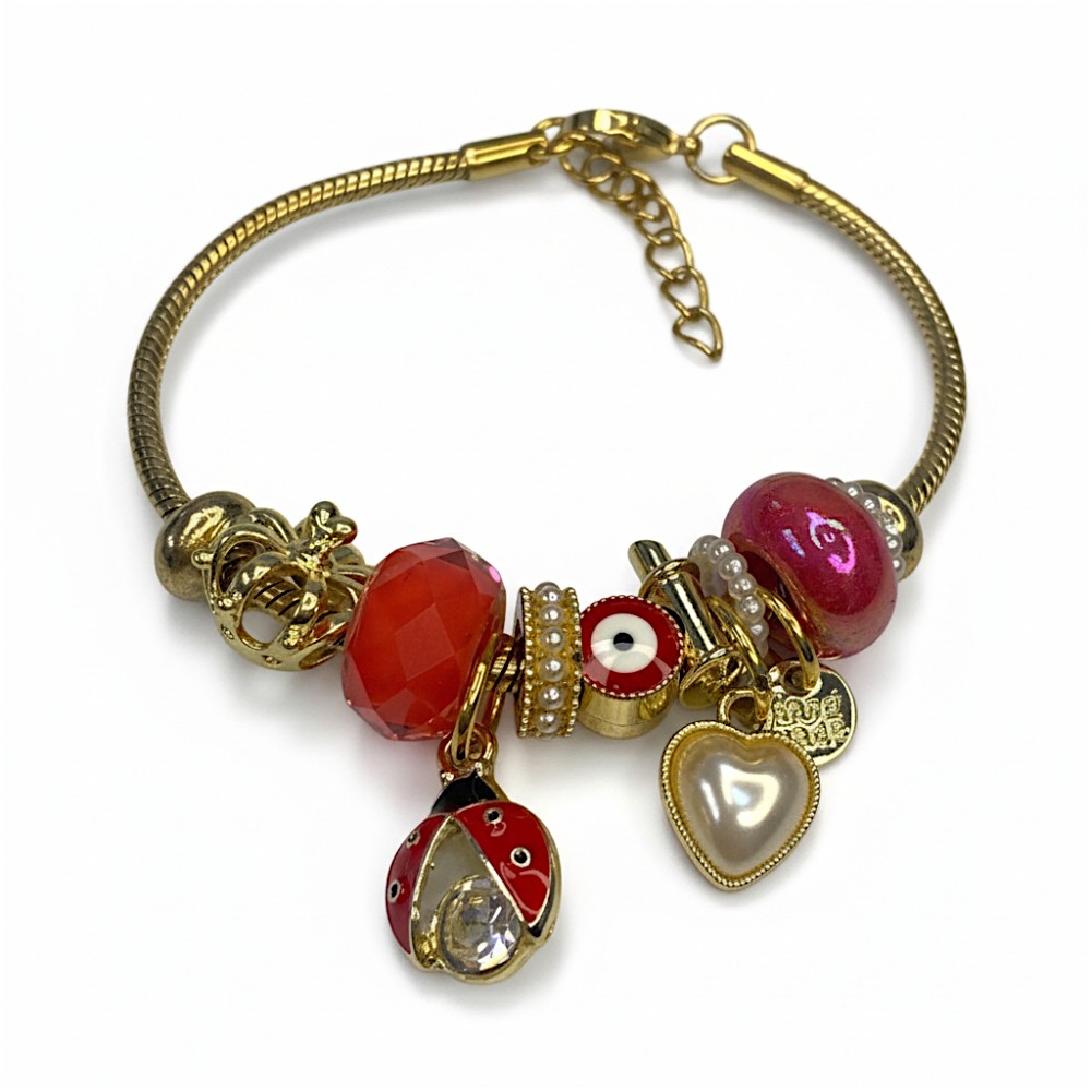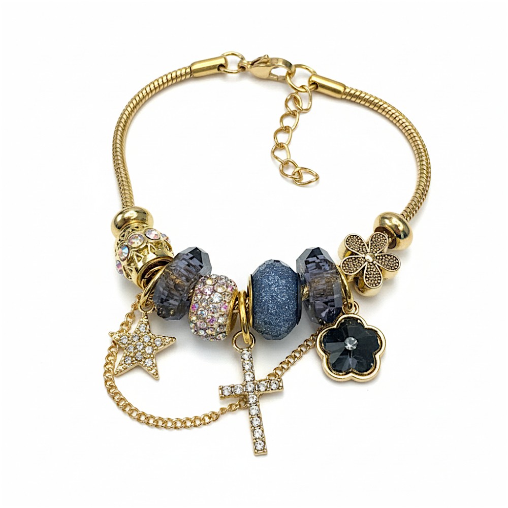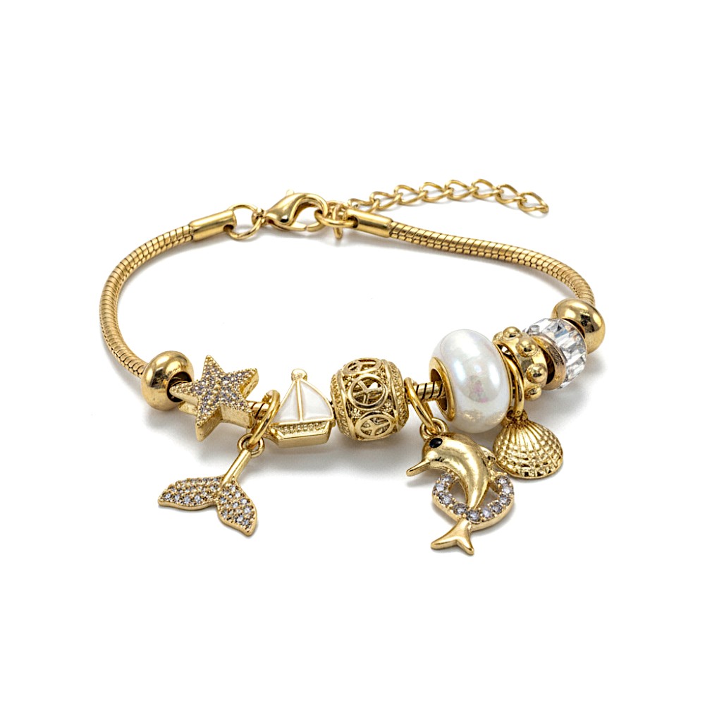 Pulsera tipo pandora con dijes Acero dorado