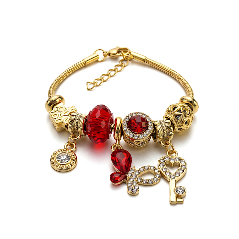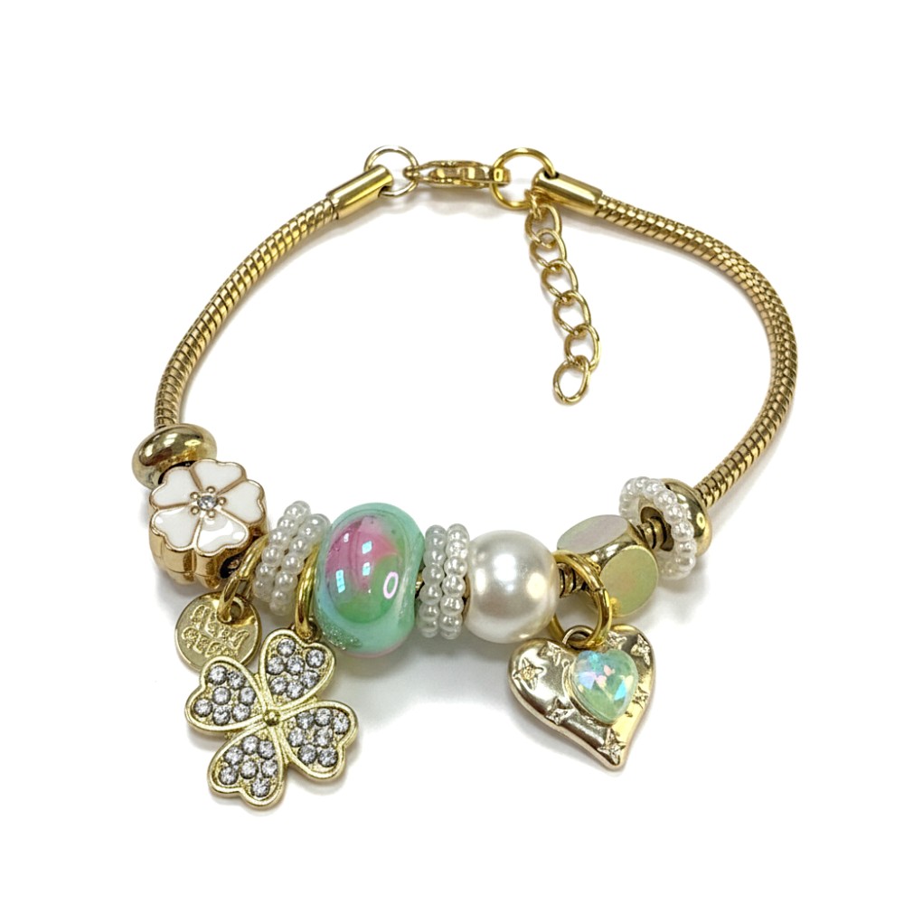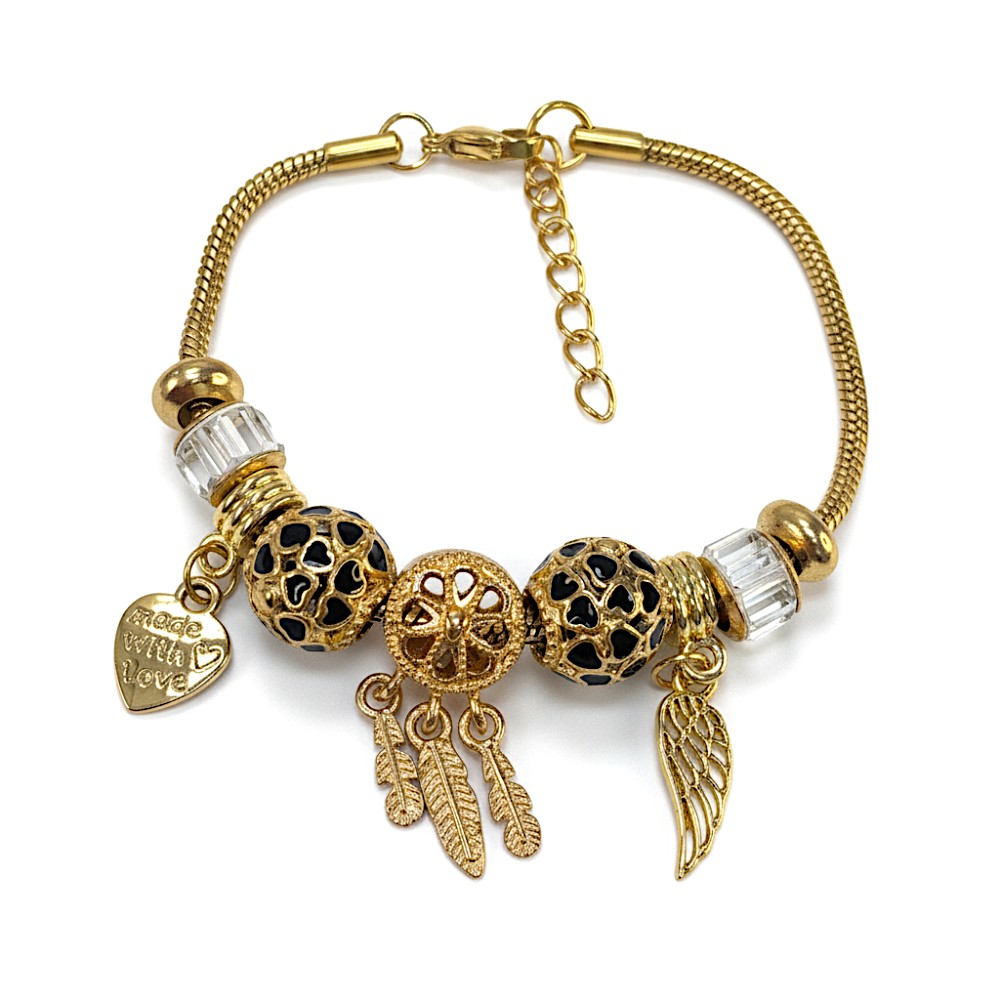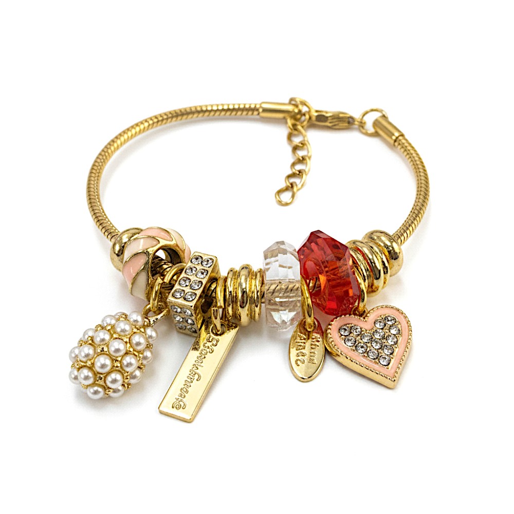 Pulsera tipo pandora con dijes Acero dorado