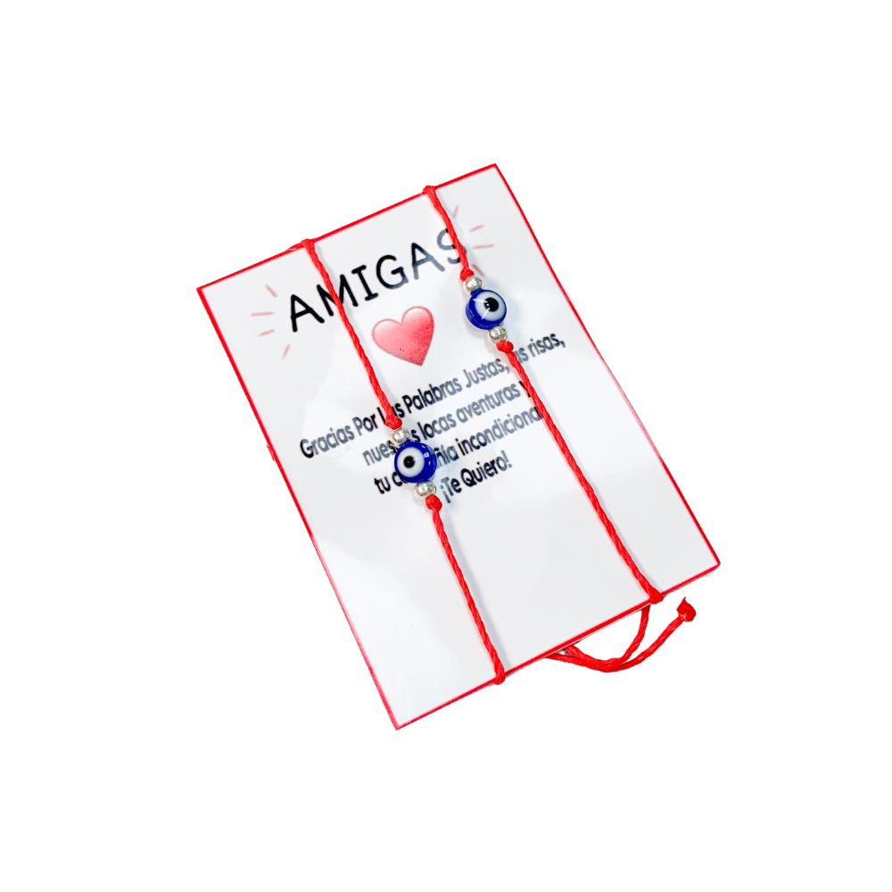 Pulseras hilo con ojos amigas -Ideal para compartir -Acero blanco