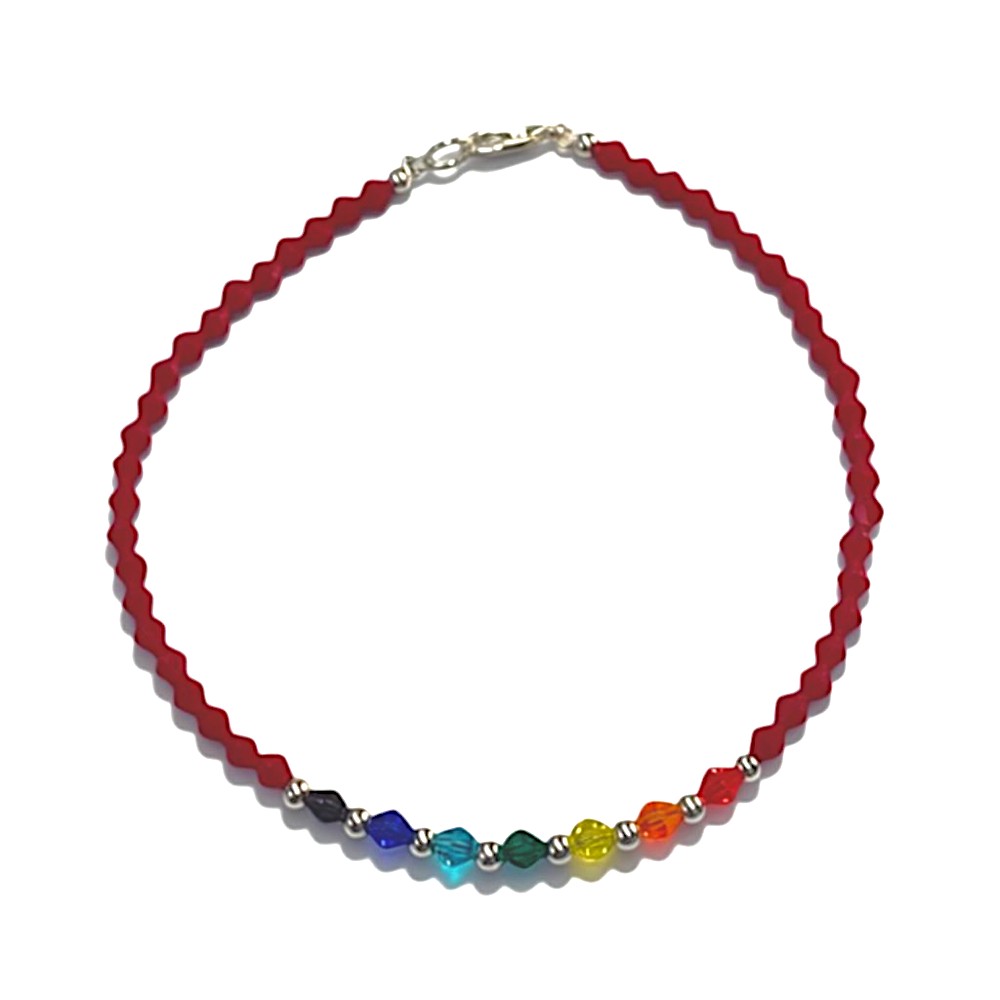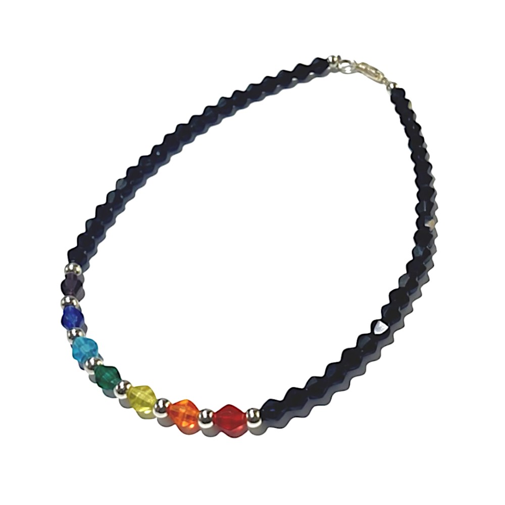 Tobillera cristal siete chakras Largo 23,5 cm Acero blanco